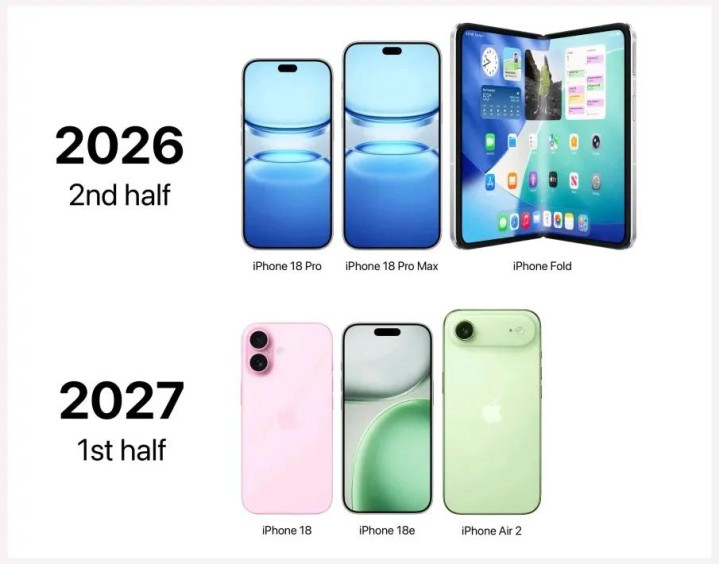2027年春季发布iPhone 18+iPhone 18e+iPhone Air 2。