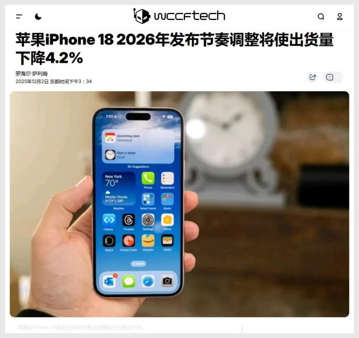 也就是说,iPhone 18系列将拆分为两个时间发布,其中iPhone 18基础款将延迟到后年才推出。